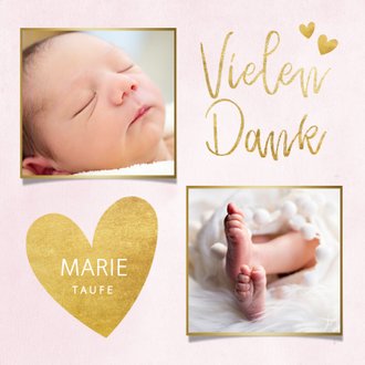 Dankeskarte Taufe Rosa Fotos Goldherzen Kaartje2go