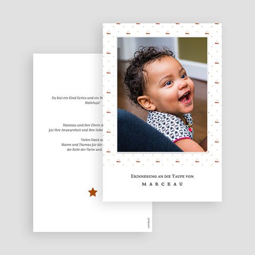 Dankeskarten Taufe selbst gestalten Danken Sie Ihren Freunden und Ihrer Familie, indem Sie Ihre eigene Karte entwerfen und verschicken Bei Kaartje2go geht das einfach und schnell In unserem Sortiment gibt es bestimmt eine Karte, die zu Ihnen passt Schauen Sie sich unsere Vorlagen an und legen Sie los!. Dankeskarten zur Taufe Designs und Formate Die Taufe war das erste große Fest für Ihr Kind Die Gäste haben dazu beigetragen, dass die Aufnahme des Mädchens oder Jungen in die christliche Gemeinschaft allen als wunderbares Erlebnis im Gedächtnis bleiben wird. Dankeskarten zur Taufe Das erste große Fest Ihres Kindes ist vorbei Um ein perfektes Fest abzurunden, sind Danksagungskarten zur Taufe für die Gäste eine besonders schöne Idee Auf diese Weise werden Ihre Gäste noch einmal an das besondere Fest erinnert Gleichzeitig können Sie sich auf eine ganz persönliche Art für die Glückwünsche.