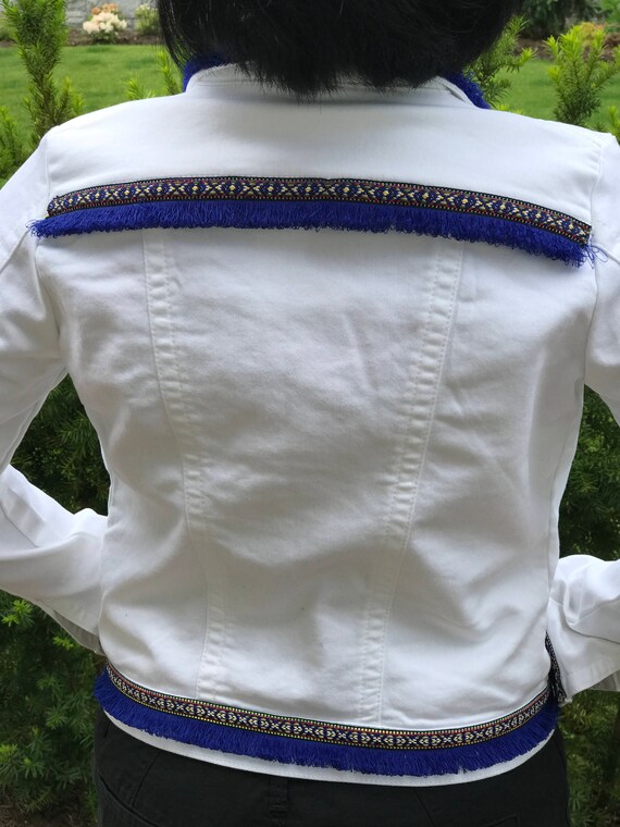 Boho Weisse Jeans Jacke Grosse S Jeansjacke Mit Aztec Ethnische Etsy