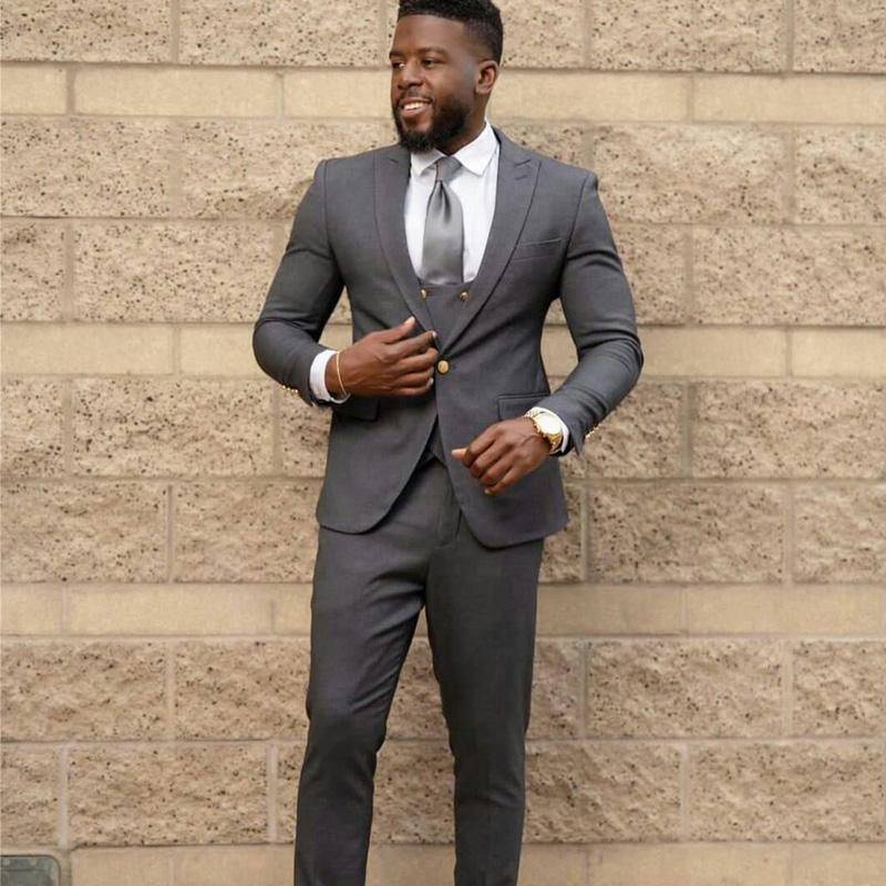 Grosshandel Herren Anzuge Grauer Blazer Geschafts Spitzen Revers Formal Slim Fit Hochzeitsanzuge Brautigam Tragen Mass Smoking Best Man Prom Jacket Pants Vest Von Leeweddingstore 66 36 Auf De Dhgate Com Dhgate