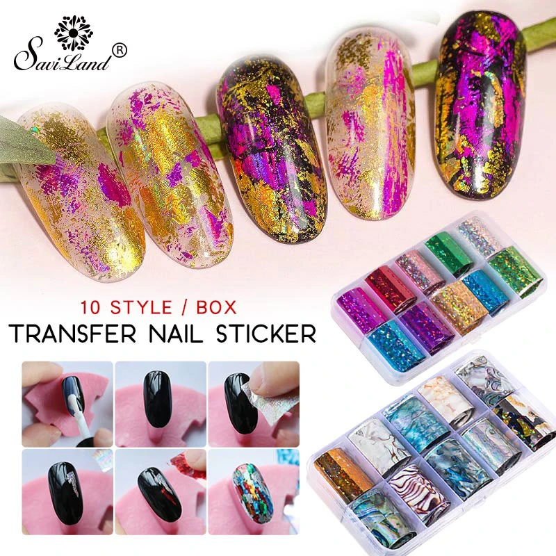 Saviland Diy Holografische Nail Folie Polish Stickers Metaal Kleur Starry Papier Transfer Nail Art Decoratie Slider Decals Stickers Decals Aliexpress