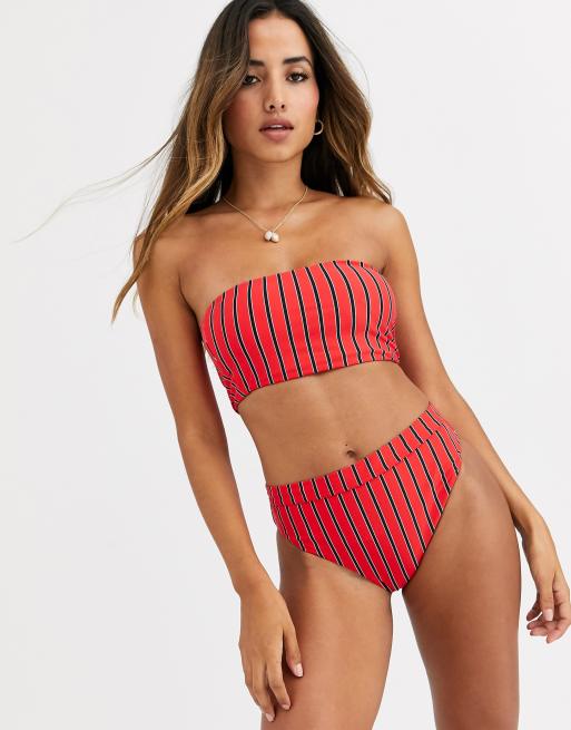 Billabong Hot For Now Rot Gestreiftes Tragerloses Bikini Oberteil Asos
