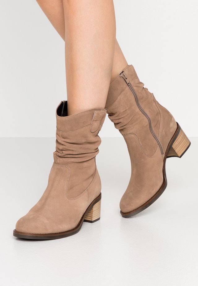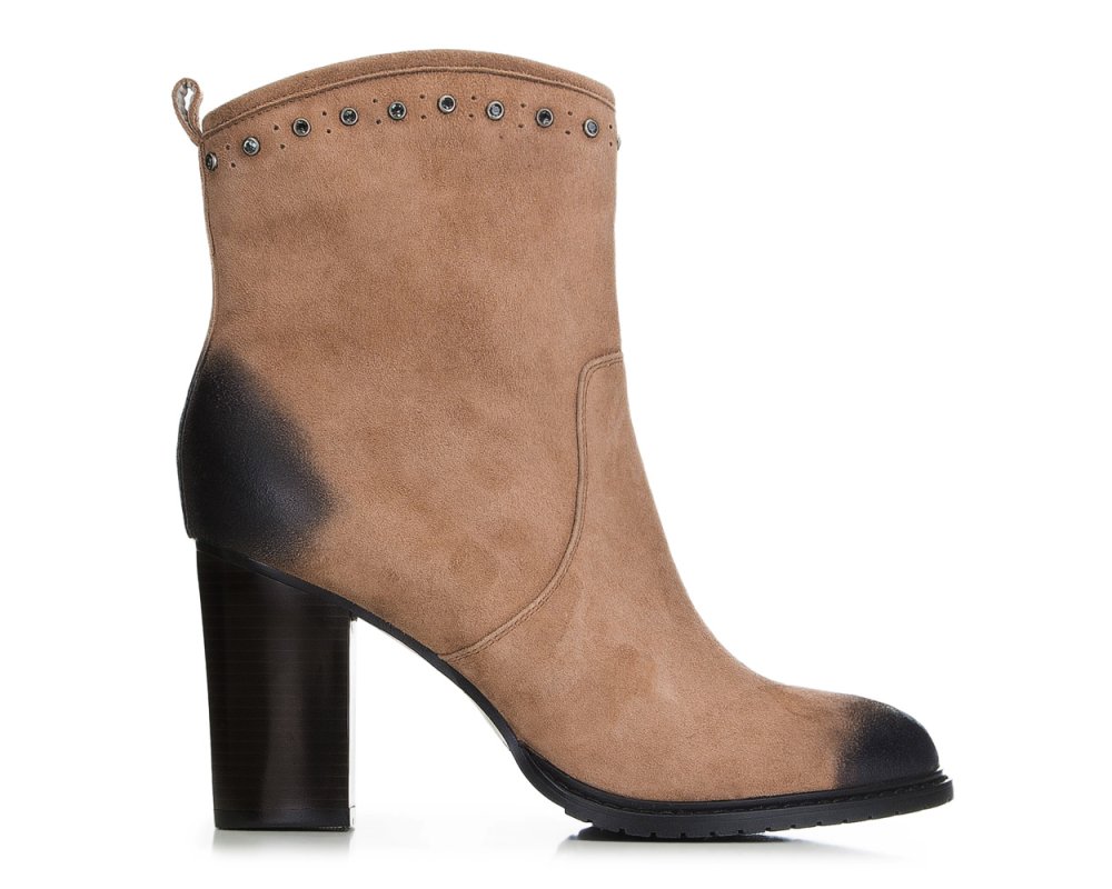 Beigefarbene Veloursleder Stiefeletten Mit Absatz Damenschuhe Sacha