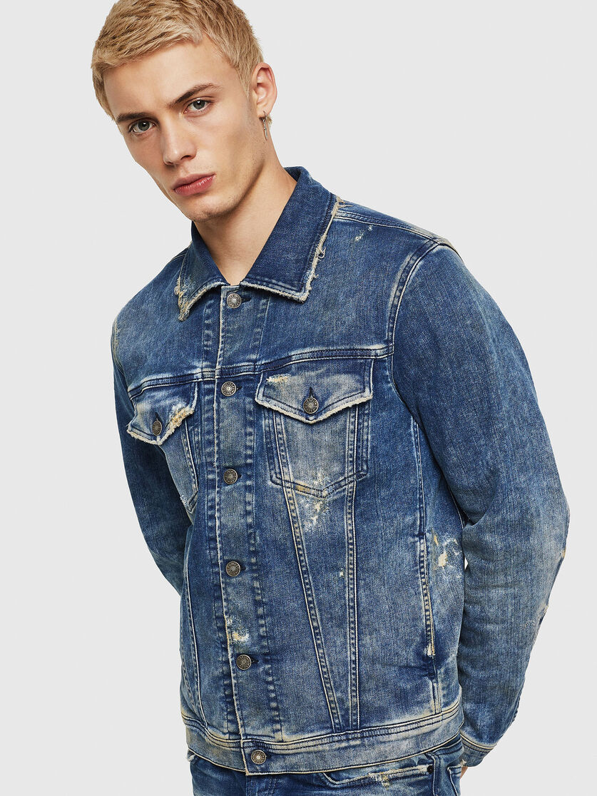 Nhill Tw Herren Truckerjacke Aus Denim Mit Rissen Diesel