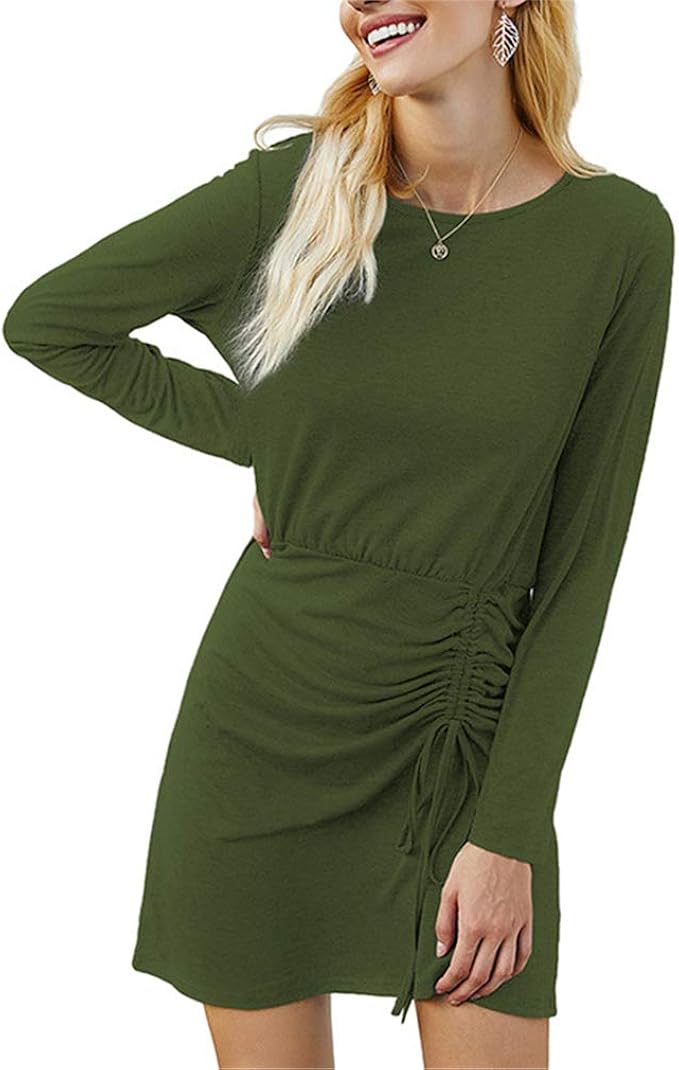 Qiyun Z Geripptes Geruschtes Kleid Gestricktes Baumwoll Damenkleid Kordelzug Langarm Winterkleider Amazon De Bekleidung