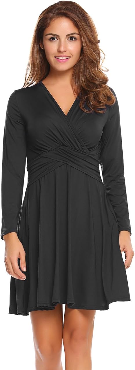 Meaneor Damen Wickelkleid Chiffonkleid Abendkleid Cocktailkleid Festlich Langarm Geripptes Kleid Jerseykleid Knielang Winterkleid Einfarbig Strandkleid Partykleid Mit V Ausschnitt Amazon De Bekleidung