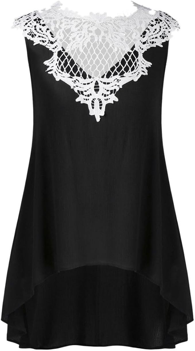 Longra Damen Bluse Tops Mit Spitze Damen Elegante Blusen Schwarze Bluse Frauen Unregelmassige Chiffon Hemdbluse Casual Vest Mode Tragershirt Bluse Tank Tops T Shirts Einfarbig S 2xl Grosse Amazon De Bekleidung