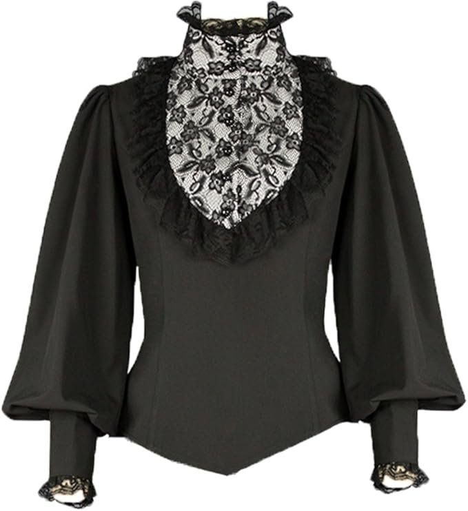 Chic Star Viktorianische Bluse Top Hochgeschlossen Trauer Schwarz Gothic Spitze Steampunk 40 Wie 38 Amazon De Bekleidung