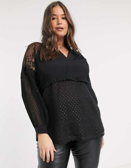 New Look Curve Schwarze Bluse Aus Gepunkteter Spitze Asos