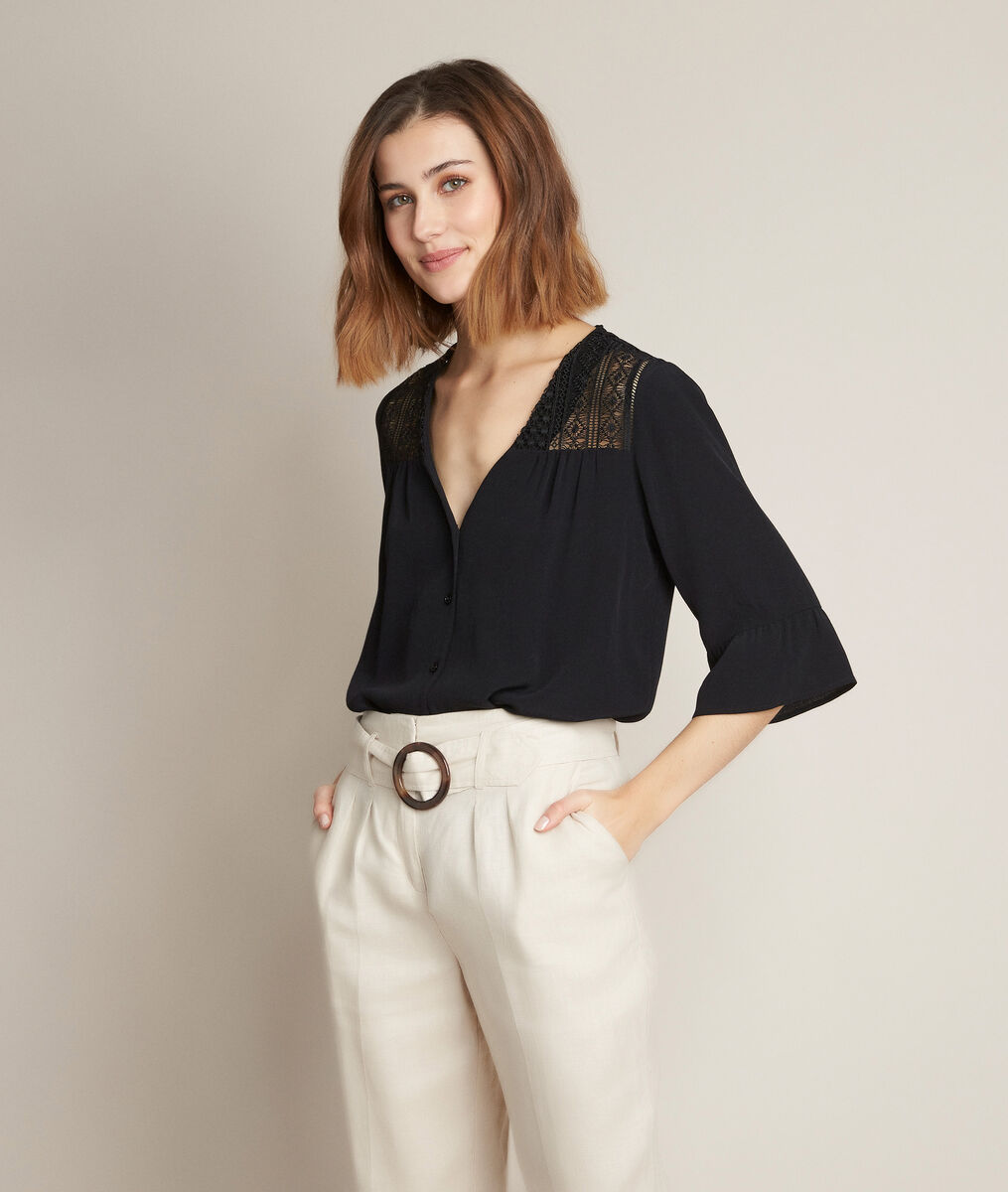 Schwarze Bluse Mit Spitze Eddie Damen Maison 123