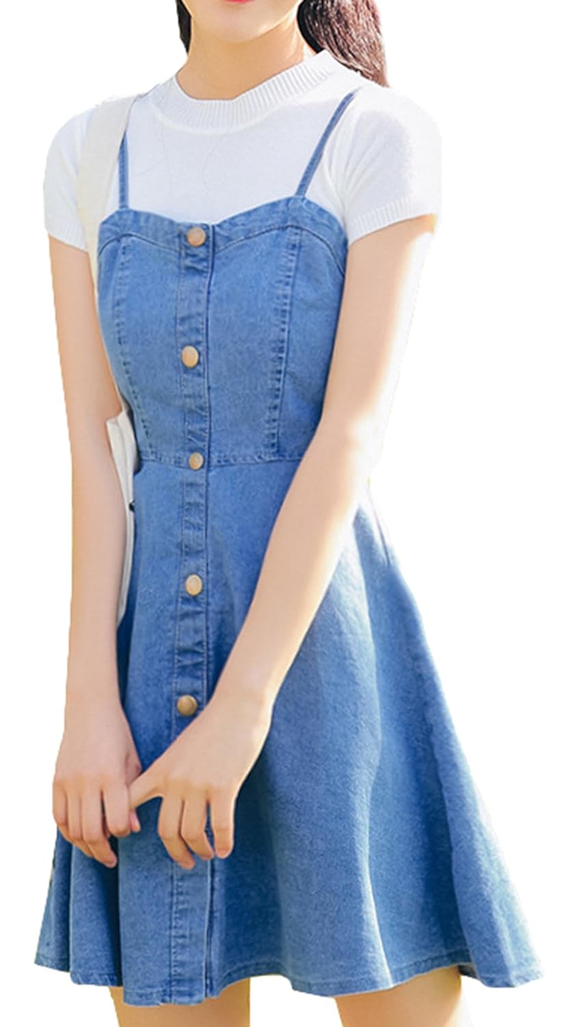 Shengwan Damen Kurze Jeanskleid Tragerrock Verstellbarer Schultergurt Jeans Latzrock Latzkleid Dunkelblau L Jeanskleid Jeans Kleid Overall Mode