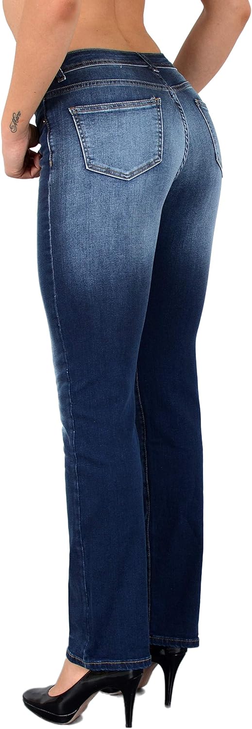 Damenmode Damen Huft Stretch Jeans Hose Gerader Schnitt Straight Leg Gerades Bein Kleidung Accessoires Expertdigital Net