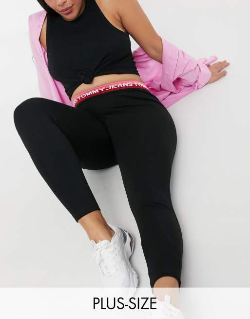 Tommy Jeans Plus Schwarze Leggings Mit Logobund Evesham Nj