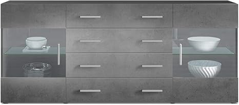 Vladon Sideboard Kommode Bari V2 Korpus In Schwarz Matt Front In Beton Dunkel Optik Vladon Amazon De Kuche Haushalt