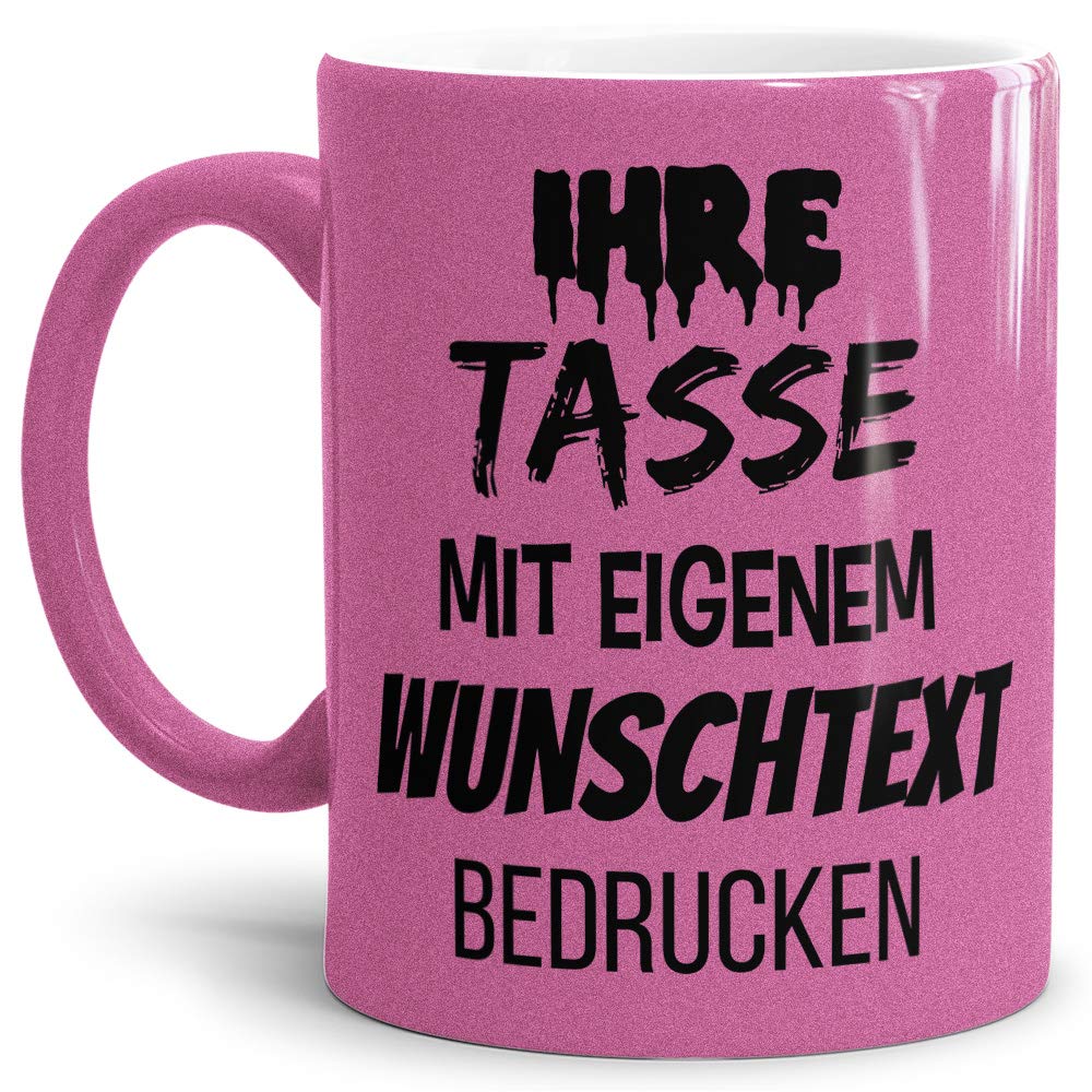 Tasse Selbst Gestalten Mit Eigenem Text Beschriften Wunsch Name Spruch Tasse Neon Pink Links Rechts Vom Henkel Bedruckt Amazon De Kuche Haushalt