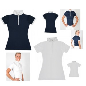 Kinder Damen Turniershirt Shirt Bluse Reitturnier Weiss Blau Turnier Hemd Strass Ebay