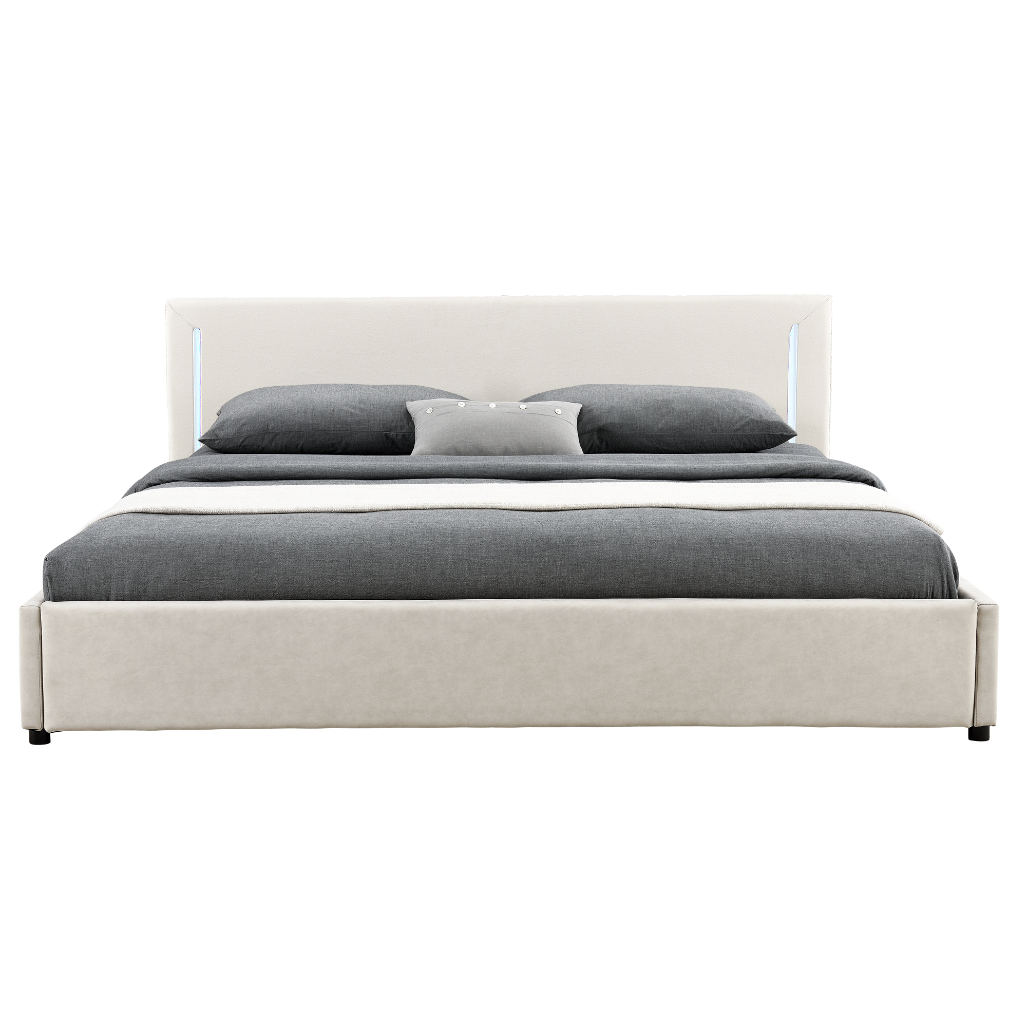 Bettgestelle Ohne Matratze Led Polsterbett 180x0cm Creme Weiss Textil Kunst Leder Doppelbett Mobel Wohnen