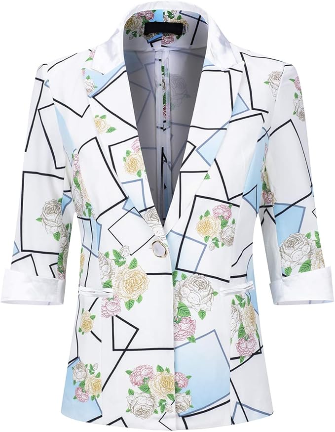 Yynuda Damen Blazer 3 4 Armel Slim Fit 1 Knopf Elegant Anzugjacke Bunt Fur Sommer Amazon De Bekleidung