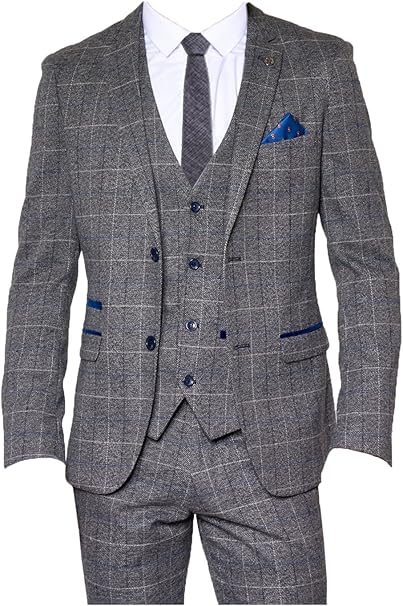 Marc Darcy Herren 3 Teiliger Anzug Tweed Kariert Scott Grey Amazon De Bekleidung