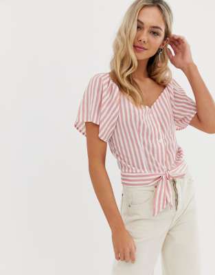 Daisy Street Geripptes Oberteil Mit Schnurung Vorn Asos