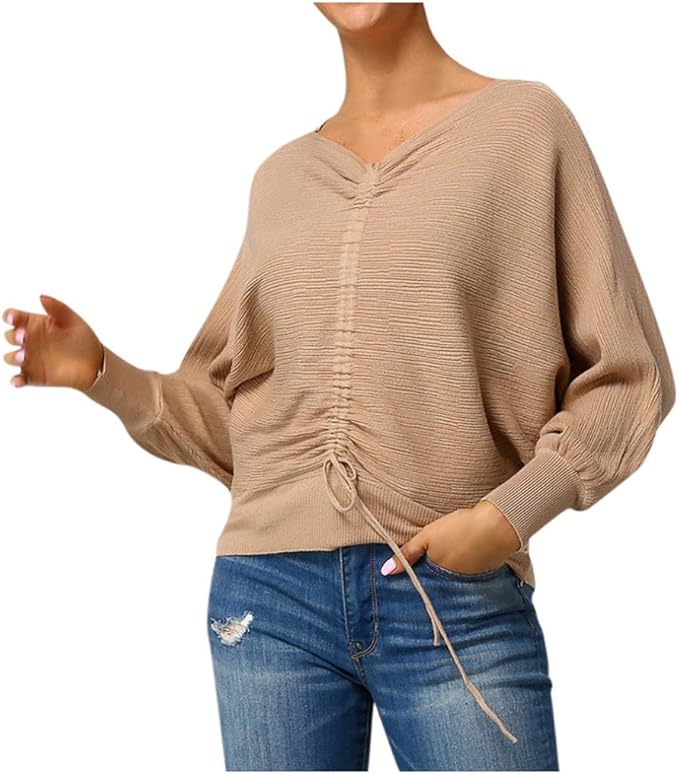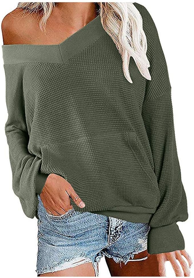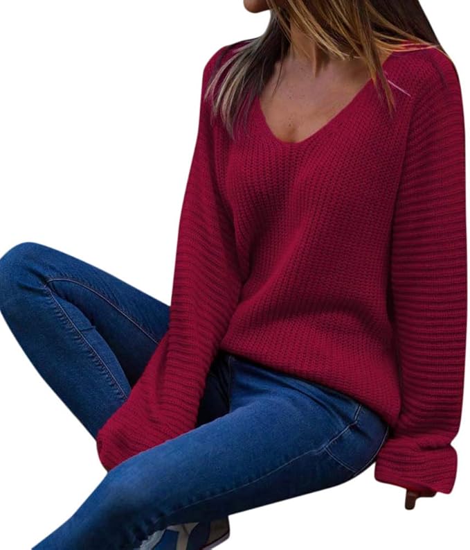 Kalorywee Heisser Damen Pullover Herbst Winter Casual Tiefer V Ausschnitt Loose Langarm Warm Elegant Langarmshirt Strick Sweater Strickpullover Oversize Tops T Shirt Amazon De Bekleidung