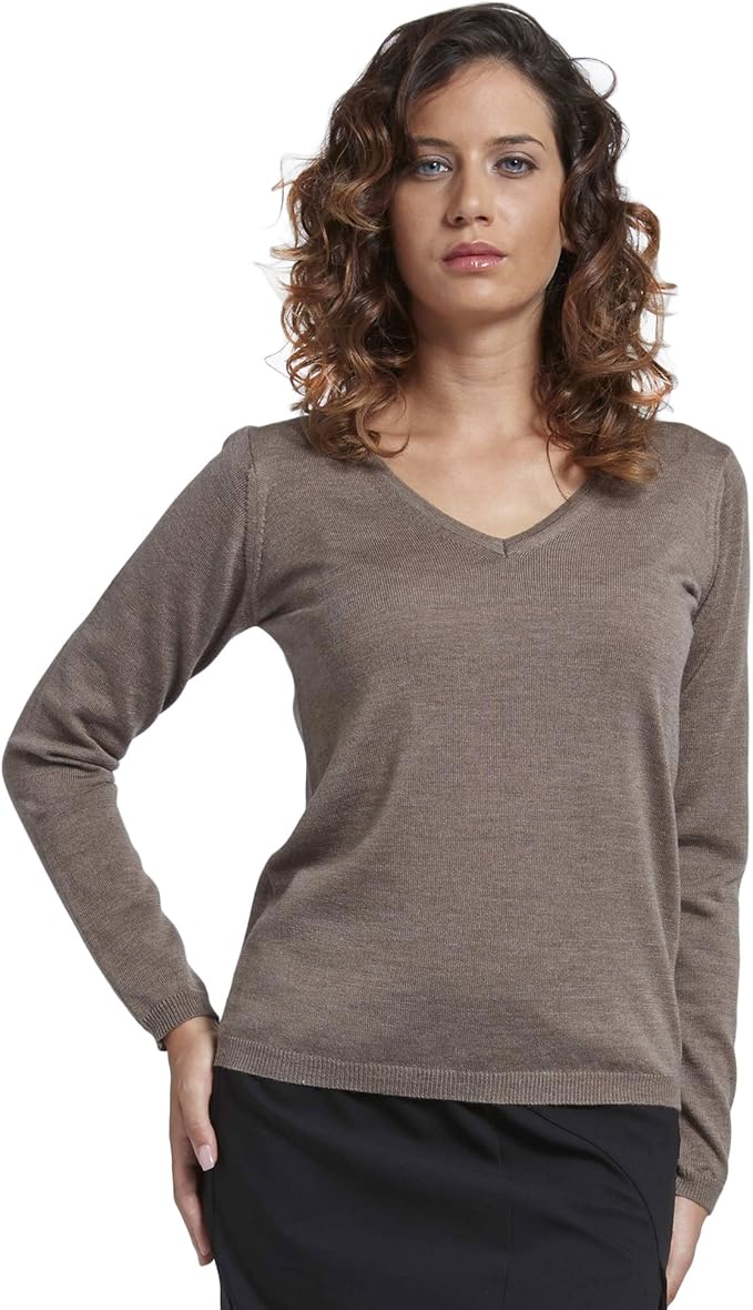 Brunella Gori Sweater Damen Pullover Mit V Ausschnitt Aus 100 Extrafeiner Merinowolle Farbe Beige Amazon De Bekleidung