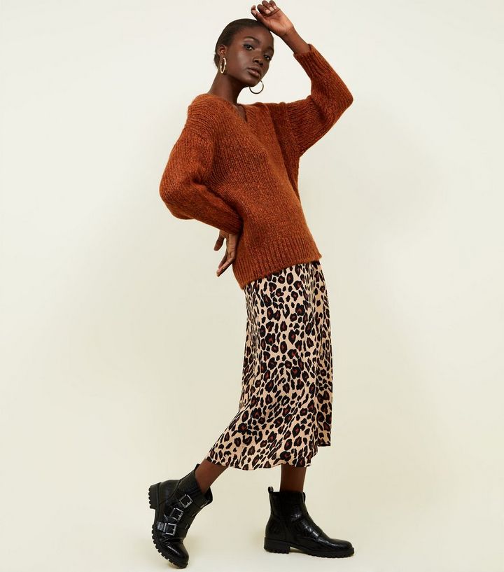 Rostbrauner Grobmaschiger Pullover Mit V Ausschnitt New Look