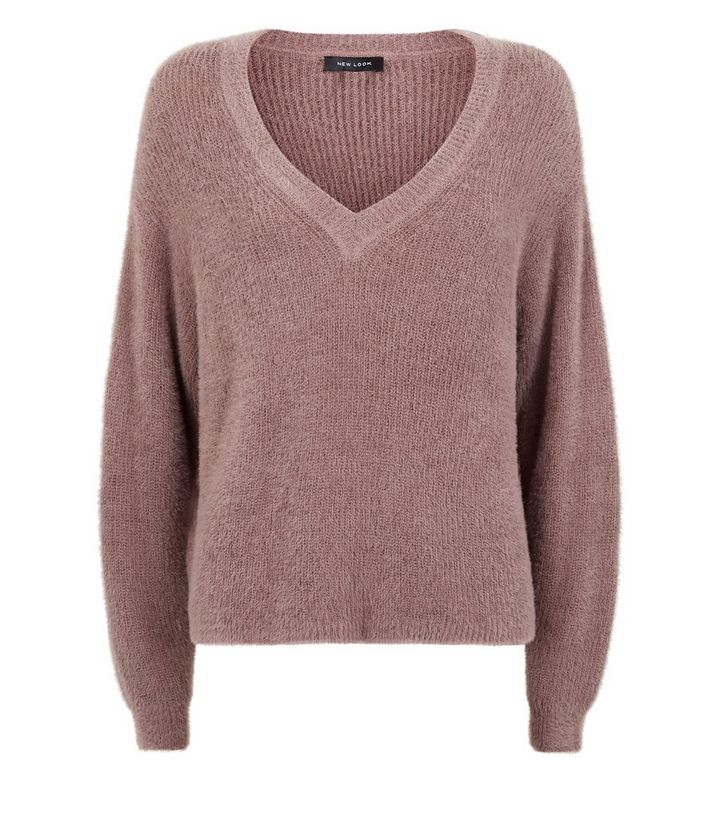 Nerzbrauner Flauschiger Pullover Mit V Ausschnitt New Look
