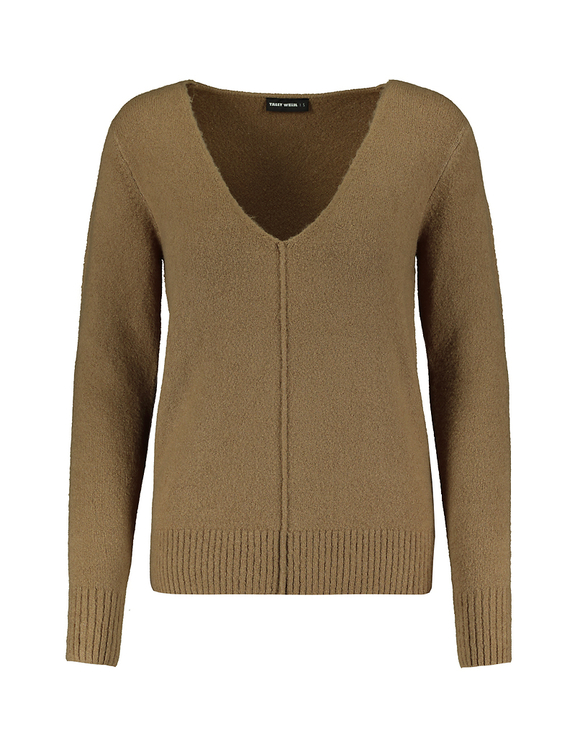 Brauner Pullover Damen V Ausschnitt
