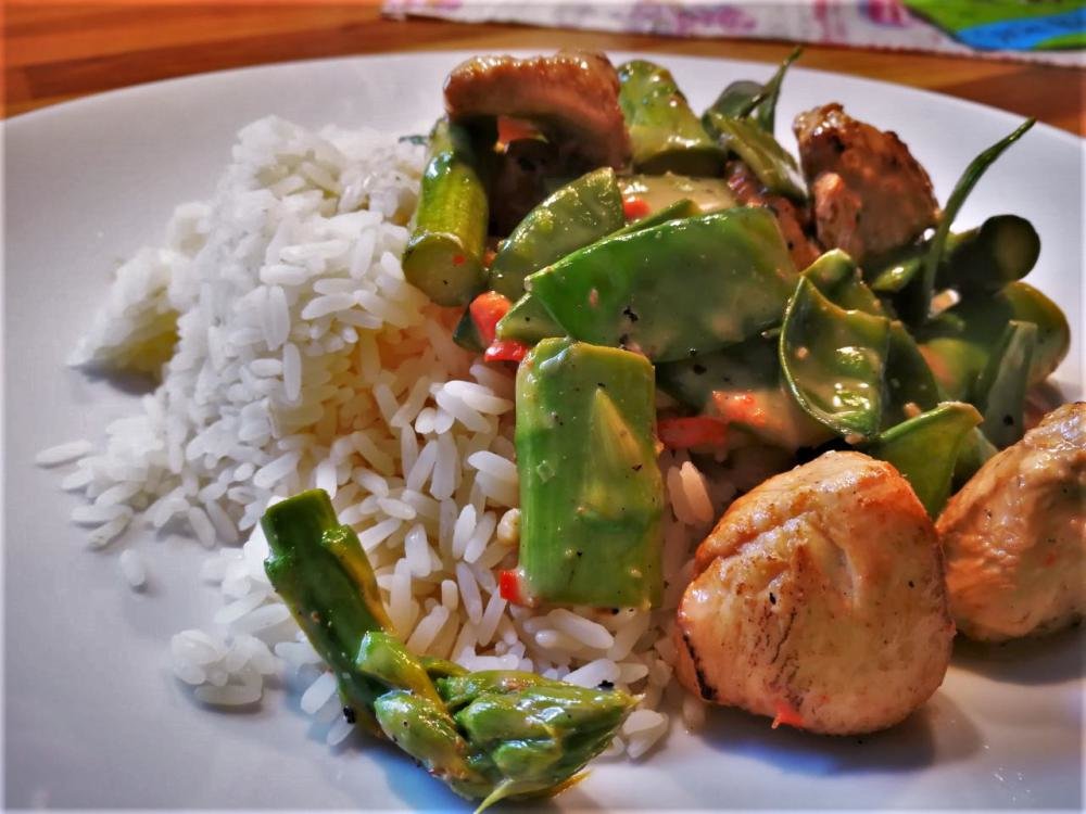 Hahnchen Gemuse Wok Mit Kokos Chilisauce Und Basmatireis Rezept Leckere Rezepte Auf Markthalle De