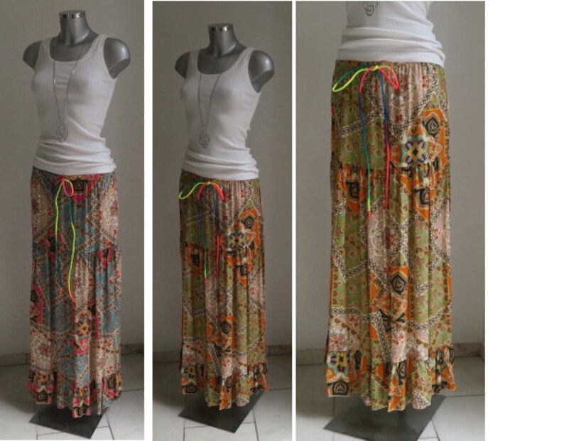 Boho Maxirock Long Boho Skirt Damen Rock Ornamente Maxi Etsy