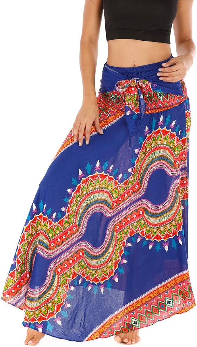 Salucia Chiffon Maxirock Damen Nationaler Stil Lang Rock Hochtaille Weitgeschwingend Schleife Wickel Schlitz Midi Rock Retro Langer Sommerrock Strand Bikini Bademode Coverup Amazon De Bekleidung