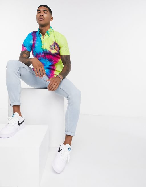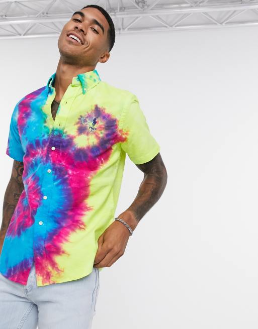 Polo Ralph Lauren Kurzarmliges Normal Geschnittenes Oxford Hemd Mit Knopfleiste Polospieler Logo Und Batik Muster In Bunt Marine Asos