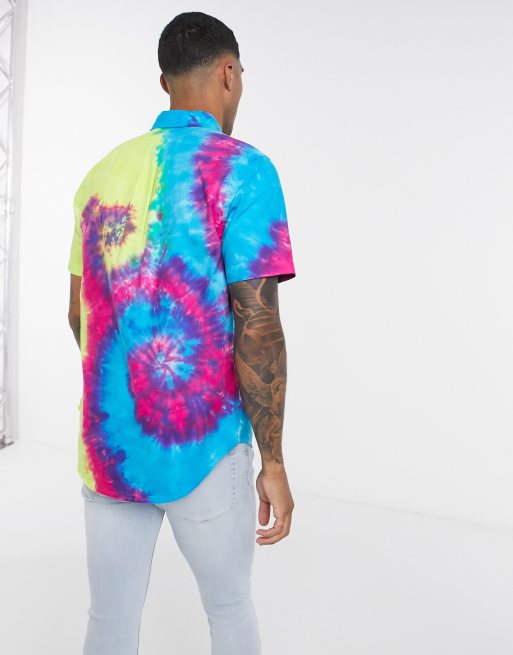 Schwarzlicht T Shirt Fur Herren Batik Neon Multi Color Spirals