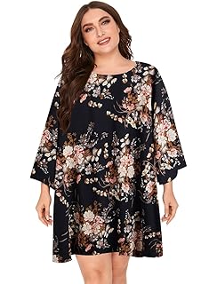 Flora Etuikleid Plus Size Frauen Kurze Batwing Armel Locker Sitzende Kleid Mit Gurtel Boutique Milanoo
