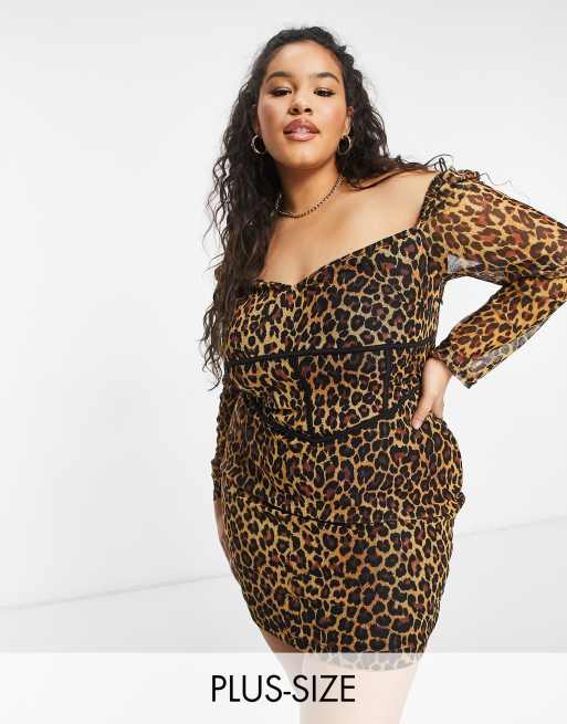 Naanaa Plus Bodycon Kleid Aus Netzstoff Mit Leoparden Print Evesham Nj