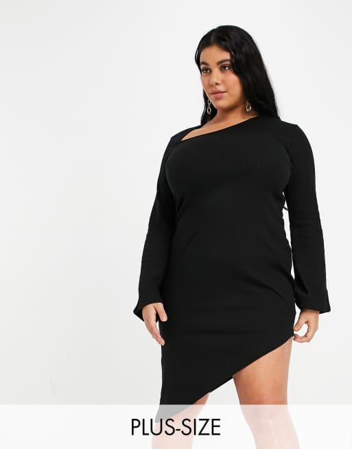 Naanaa Plus Bodycon Kleid In Schwarz Mit Langen Armeln Und Zierausschnitt Evesham Nj