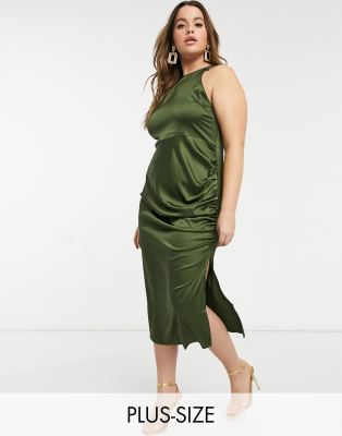 Naanaa Plus Hochgeschlossenes Satin Kleid In Olivgrun Evesham Nj