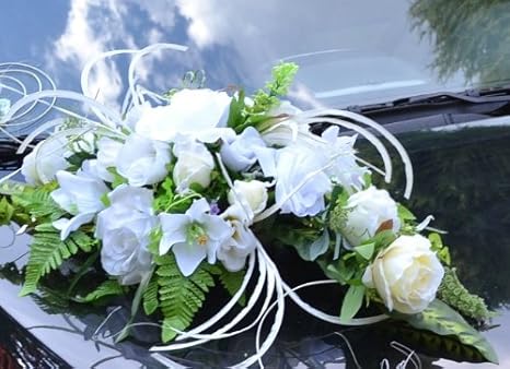 Autoschmuck Rattan Feder Autodeko Hochzeit Dekor Verschiedene Variante Komplett Weiss Blumenstrauss Weiss Gross Amazon De Kuche Haushalt