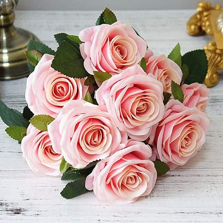 Amazon De Abmbertk Kunstblumen 10 Kopfe Gross Kunstliche Rose Blumenstrauss Kunstliche Hochzeit