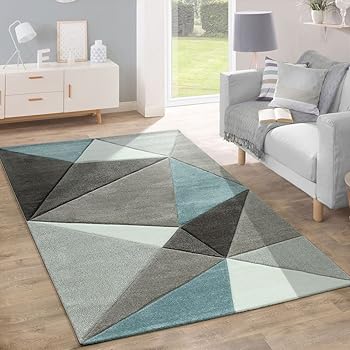 Teppich Wohnzimmer Turkis Blau Grau Dreieck Rauten Design 3 D Optik Kurzflor Ebay