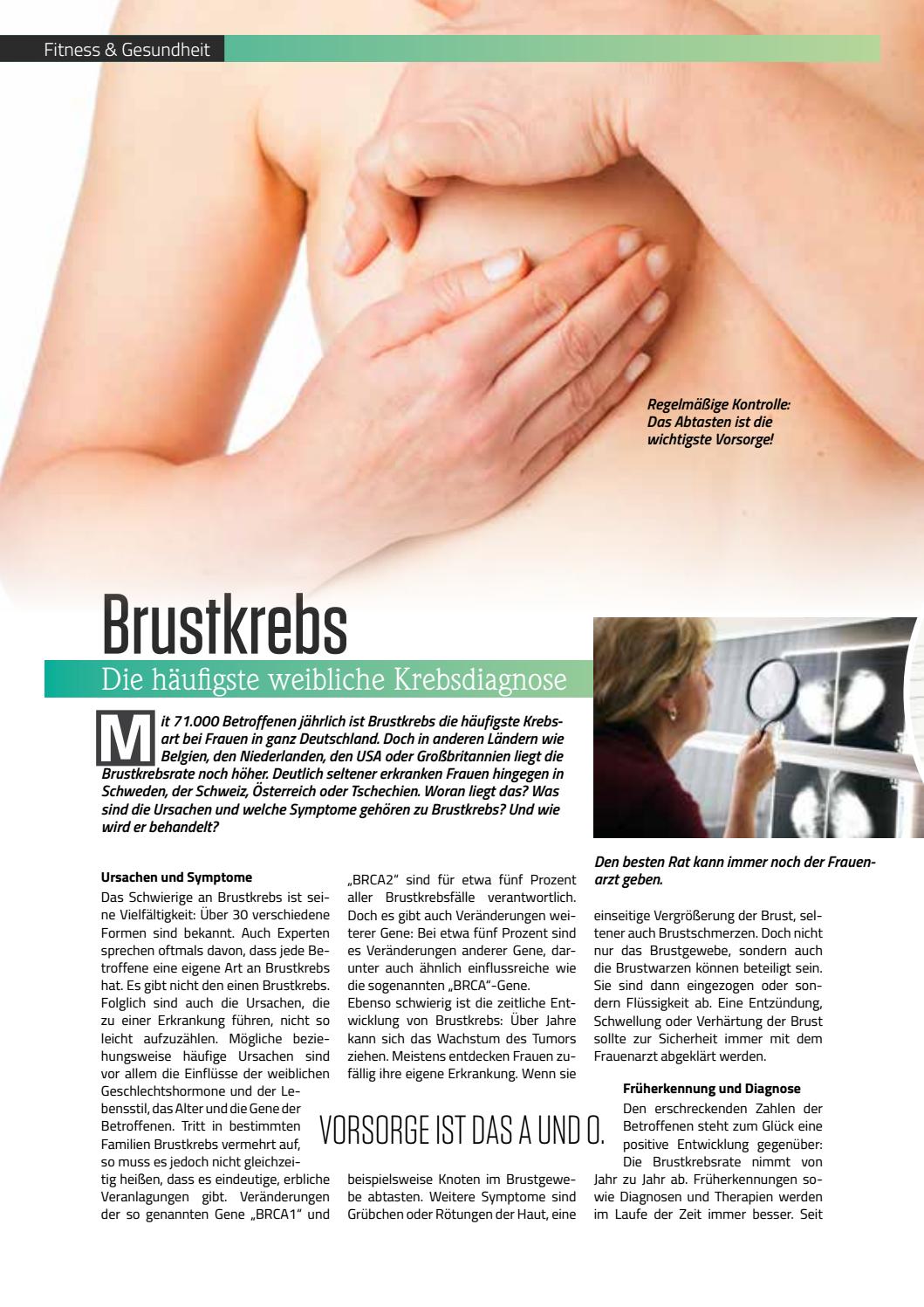 Brustkrebs ist die häufigste Krebserkrankung bei Frauen Die Heilungschancen stehen gut, wird der Tumor rechtzeitig erkannt und früh behandelt. Der Brustkrebs (MammaCa) ist die häufigste bösartige Tumorerkrankung der Frau Die genaue Ursache für die Entstehung des Brustkrebses ist noch unbekannt Bei etwa 5% alle Brustkrebspatienten ließ sich aber ein Zusammenhang von Brustkrebs mit einer Veränderung eines Gens finden. Veränderungen an der Haut der Brust (etwa Rötungen, Schuppungen, Einziehungen oder andere Veränderungen wie zB “Orangenhaut”) Schwellungen in der Achselhöhle Selbstverständlich gibt es weitere Anzeichen für Brustkrebs, ich habe hier die wichtigsten und häufigsten Symptome aufgezählt.