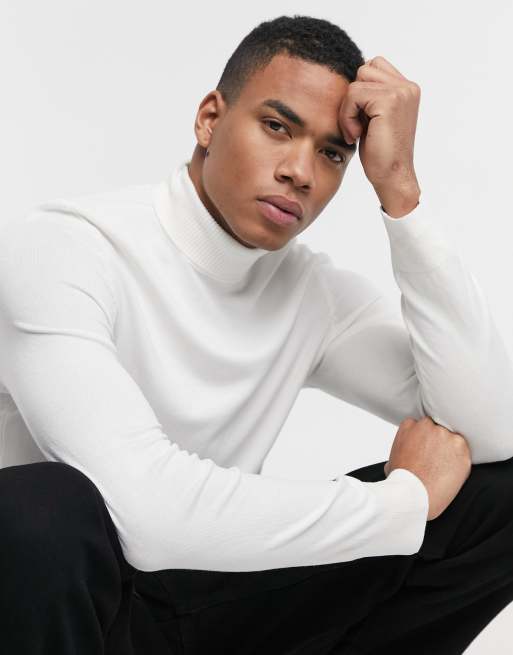 Feinstrick Rollkragenpullover Weiss Herren H M Ch