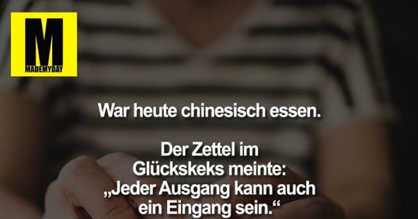 War Heute Chinesisch Essen Der Zettel Im Gluckskeks Meinte Jeder Ausgang Kann Auch Ein Eingang Sein Lange Rede Kur Witzige Spruche Lustige Spruche Worter