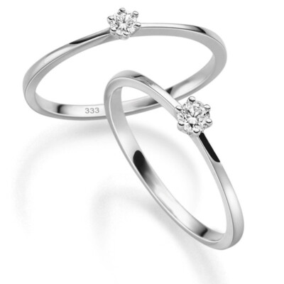 Weissgold Echt Gold 333 Frauen Verlobungsring Zirkonia Solitar Antrags Ring Ebay