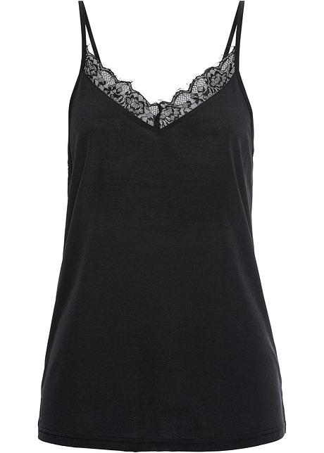 Zartes Top Mit Spitzeneinsatz Am Ausschnitt Schwarz