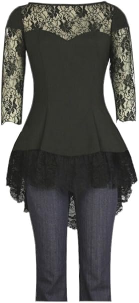 Gothic Damen Bluse Top Shirt Mit Spitze Und Kleiner Schleppe 52 22 Schwarz Amazon De Bekleidung
