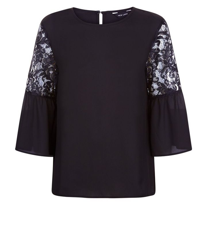 Schwarzes Top Mit Spitze Und Flatterarmeln New Look