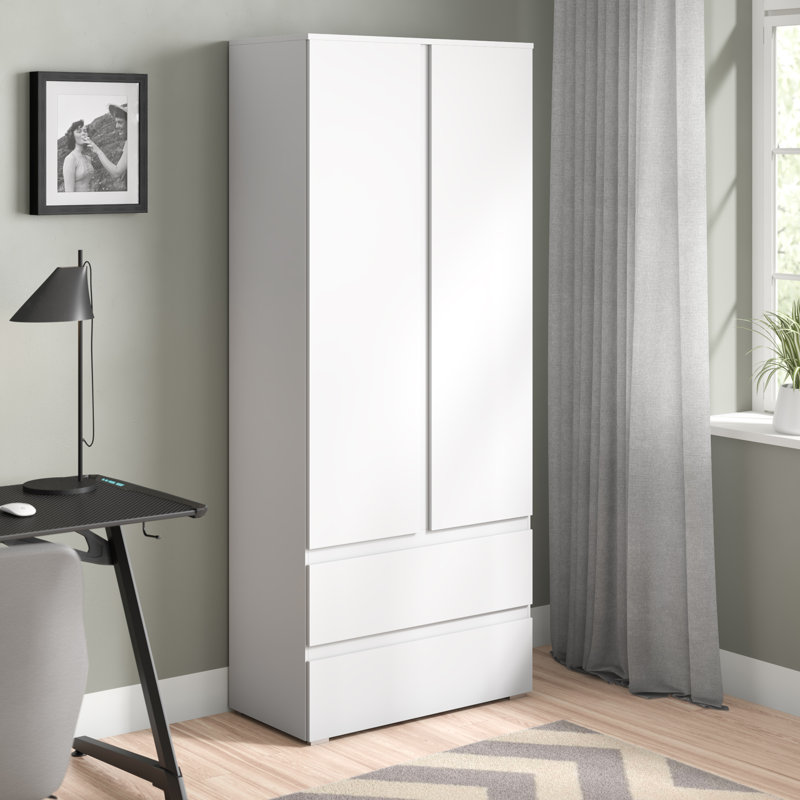 Mehrzweckschrank Ronny Aufbewahrungsschrank 2 Turen 2 Schubladen 80 Cm Weiss Ebay