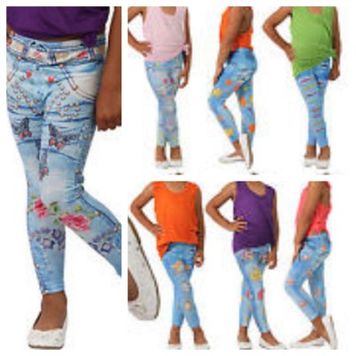 Kinder Leggins Hose Gr 122 170 Jeans Optik Madchen Leggings Mit Muster Strech Ebay
